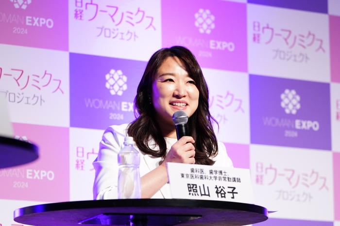 「女性には生涯3度の危機あり! 健康・美容をおびやかす歯周病リスクとケア」では、照山裕子東京医科歯科大学非常勤講師が、女性ホルモンが変化する「思春期・妊娠出産・更年期」という3つの時期に歯周病が体に悪影響を及ぼすリスクについて説明。「歯周病は高齢者の病気と思われがちですが、全世代を通じて口のケアについて知ってほしい」と、セルフケアのポイントや歯磨き粉の選び方をはじめ、忘れがちな舌磨きや正しいうがいの方法などにも触れると、セミナーを訪れた参観者たちは真剣に耳を傾けている様子でした。