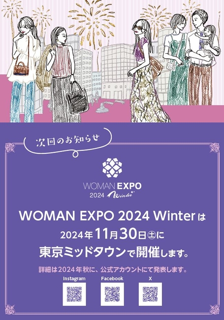 次回、「WOMAN EXPO 2024 Winter」の開催が東京ミッドタウンにて11月30日(土)に決定しました。