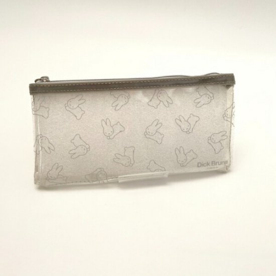 ミッフィーのうさぎシリーズペンポーチは、クリア感があるから文具見せもコスメ見せもできちゃう!背面はスモーキーカラーってどんだけかわいいの…。