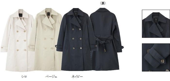 オフィスシーンに活躍する、ベーシックなデザインの「トレンチコート」。
