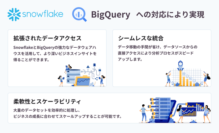 Snowflake、BigQueryの対応により高度なデータ分析とAI構築を行うことが可能