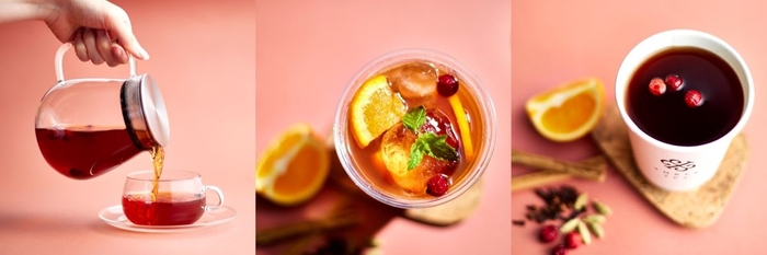 また最近注目を集めている台湾紅茶を使い、ワインにフルーツやスパイスを加えた「サングリア」をイメージしたフルーツティーも新登場。台湾紅茶を代表する品種の紅玉紅茶に、シナモンなどのスパイスとオレンジやミックスベリーシロップを組み合わせた、フルーツの爽やかな甘みとスパイスのリッチで奥深い味わいを感じるノンアルコールドリンクです。