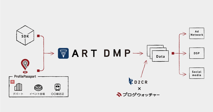 株式会社ブログウォッチャー(本社:東京都中央区、代表取締役社長:酒田 理人、以下 ブログウォッチャー)と、株式会社D2C R(本社:東京都中央区、代表取締役社長:岡 勇基、以下 D2C R)は、ブログウォッチャーが提供する位置情報データプラットフォーム「プロファイルパスポート」と、D2C Rが提供するスマートフォン向け広告効果測定データ基盤「ART DMP(アート ディエムピー)」(※1)を活用した広告配信を開始いたしました。