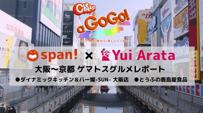 初回である2022年5月2日(月)放送「大阪・京都編」では、大阪府住みます芸人「span!」さんと、ゲマトスグルメレポーターを務めるモデルの「新 唯(あらた ゆい)」さんが、ゲマトス加盟店であり、大阪中心部に位置し絶景の夜景が楽しめる「ダイナミックキッチン&バー 燦-SUN- 大阪店」、そしてスイーツのような濃厚豆腐として、知る人ぞ知る銘品、鹿島屋豆腐店(京都府向日市)のおとうふをレポートいたします。