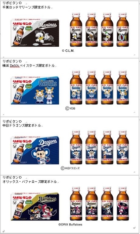 ・リポビタンDのラベルに、各球団のマスコットキャラクターなどをあしらった限定ボトル