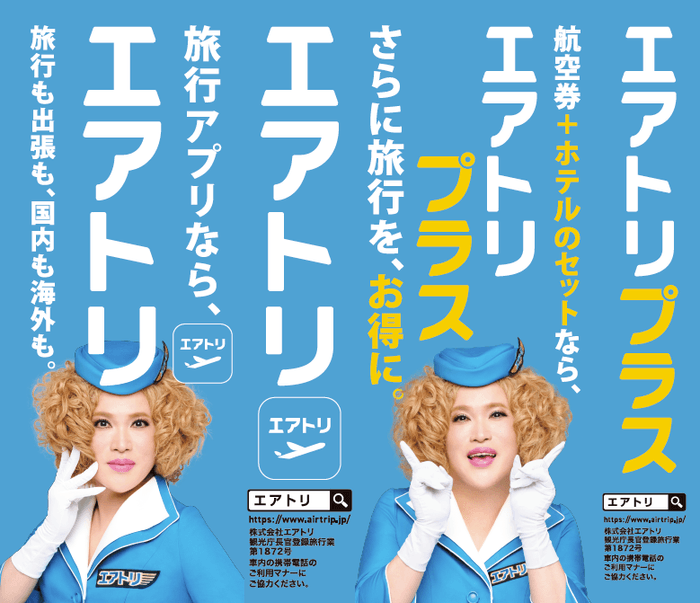 ITの力で、エアトリ旅行事業、ITオフショア開発事業、訪日旅行事業・Wi-Fiレンタル事業、メディア事業、投資事業(エアトリCVC)、地方創生事業、クラウド事業、人材ソリューション事業(投資先にて注力)、クリエイティブソリューション&DX事業、マッチングプラットフォーム事業、法人DX推進事業・ヘルスケア事業(投資先にて注力)とCXOコミュニティ事業を含む全12事業を手掛ける株式会社エアトリ(本社:東京都港区、代表取締役社長兼CFO:柴田 裕亮、証券コード:6191、以下当社)は、エアトリの更なる認知拡大ならびにエアトリブランディング強化のため、今期も引き続き、TV-CM、交通広告、各種キャンペーン等を中心にプロモーション活動を実施してまいります。