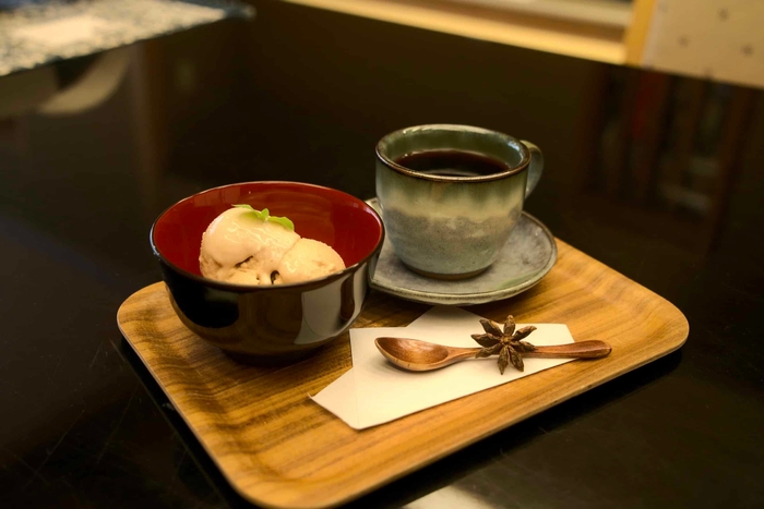 足湯に浸かった後には、石井味噌の味噌アイスを使用したオリジナルの味噌スイーツを提供します。界 松本では、長野県塩尻市の桔梗ヶ原地域のワインを約50種類取り揃えており、地元の赤ワインを使用したホットワインとバニラアイスの甘みの中にふんわり広がる味噌の少し塩気のある味が特徴のオリジナルの味噌スイーツのペアリングを提案します。