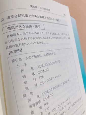 ◆遺産分割協議における検討漏れや不備のある条項例を取り上げ、問題点を指摘しています。