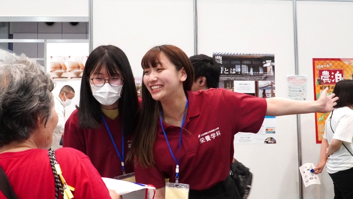 イベント当日は海老澤セミナーの学生も準備や来場者の応対を行いました。さらに、栄養学科の学生は授業の一環としてこの食育推進全国大会を見学しました。