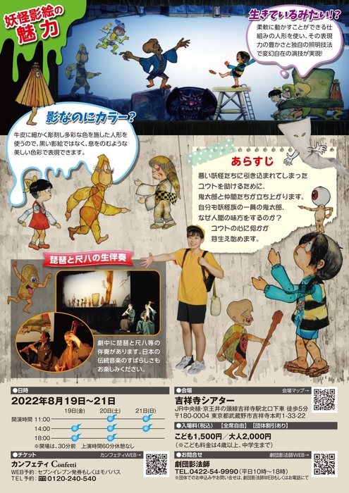 生誕100周年をむかえる水木しげるの有名漫画を、妖怪影絵劇×笛と琵琶の生演奏で! 劇団影法師 妖怪影絵劇「ゲゲゲの鬼太郎」8/19開幕 カンフェティにてチケット発売中