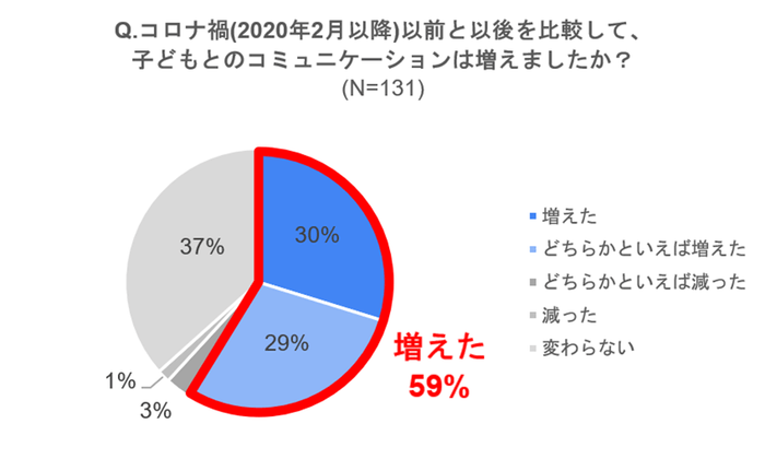 ① コロナ禍で子どもとのコミュニケーションが増えたと6割(59.0%)が回答