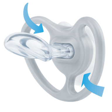 赤ちゃんには、舌やあごを動かして吸い付きたい「吸啜(きゅうてつ) 欲求」が生まれながらに備わっています。授乳は、空腹を満たすとともに吸啜欲求を満たしてあげる行為。おっぱいを飲むときと同じ口の運動ができるヌークのおしゃぶりは、舌やあごなどの周囲筋を鍛えながら赤ちゃんの吸啜欲求をも満たすため、多くの小児科医・助産師が推奨しています。