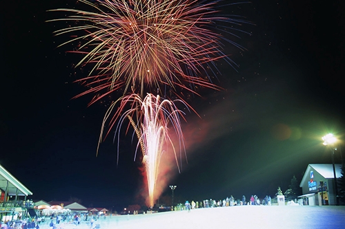 冬の澄んだ夜空に約600発の花火が打ち上げられます。ゲレンデから打ち上げられるため迫力満点です。