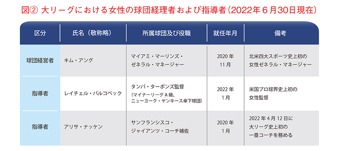 一方、多様性には性差別の問題もあります。もちろん男性と女性は筋肉量も瞬発力も違いますから、同じグラウンドに立つことが直ちに多様性の重視になるというわけではありません。しかし球団の経営に関しては男性・女性の差はないはずです。ところが女性の登用という点では、大リーグはかなり遅れていました。球団オーナーのほとんどが男性で、たまに女性がいても、前のオーナーだった夫の後を継いだというパターンがほとんどでした。大リーグ人気が高く、スタジアムに多くの観客が詰めかけた時期にはそれでも良かったのです。しかし1994年と1995年に選手組合によるストライキがあり、大リーグの観客数が激減。その後は徐々に客足が戻り、2007年には過去最多の観客動員を記録しました。しかし、コロナ禍の影響で2020年は無観客となり、2021年以降は有観客となったものの動員力に陰りが見えています。加えて、これまで男性社会であった大リーグが、女性客から敬遠され始めたことも理由の一つでした。こうして、女性に魅力あるコンテンツづくりのために、ようやく大リーグは女性の積極的な登用を決めるのです。2020年には初の女性経営者が誕生し、また女性の監督やコーチなど、女性の進出が相次いでいます。