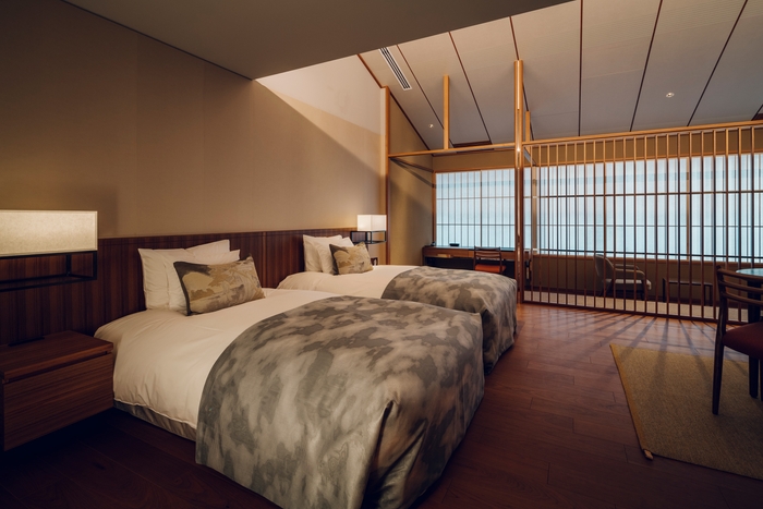 全29室。日本の素材を使いつつ、和を強調しすぎず。伝統に敬意を払い、現代の心地よさを併せ持つ客室となりました。上質な無垢の素材からは、落ち着きと安らぎを感じ、また、時が経つにつれて味わいが増す、経年美化をお楽しみいただけます。