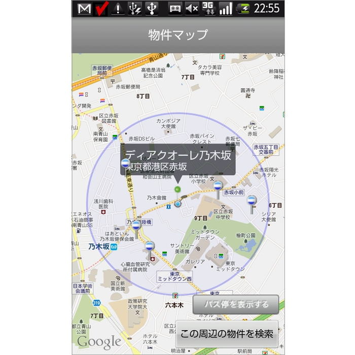 ・物件詳細の地図ページで、最寄りのバス停を表示