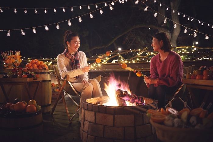 熱海の絶景と温泉に浸るリゾートホテル「星野リゾート リゾナーレ熱海」では、2019年9月2日〜10月11日、 11月1日〜30日の期間、「ナイトフルーツバーベキュー」を初開催します。ホテル敷地内にある、イルミネーションが輝く夜の森の中で、焚き火で焼いたフルーツをデザートとして楽しむイベントです。伊豆地域で有名な柑橘類を中心としたフルーツを揃えます。