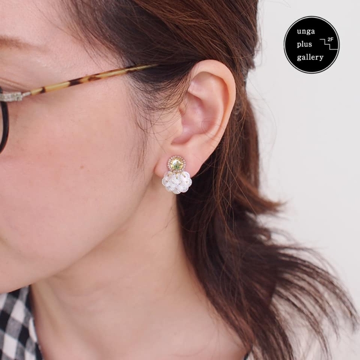 「指の間からこぼれ落ちそうに小さく、美しいものを掬い上げる」をコンセプトに、糸、ビーズ、スパンコールなどで形づくるアクセサリー。