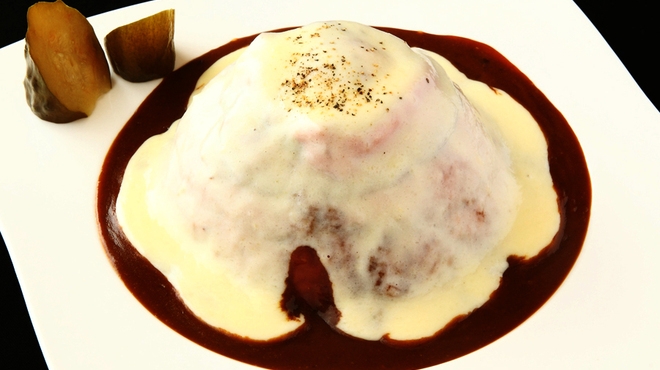 『ジェイズカレー久我山店』の定番メニューである「ジェイズ丼」は、富士山をイメージしたフォルムのボリューム満点なメニューです。