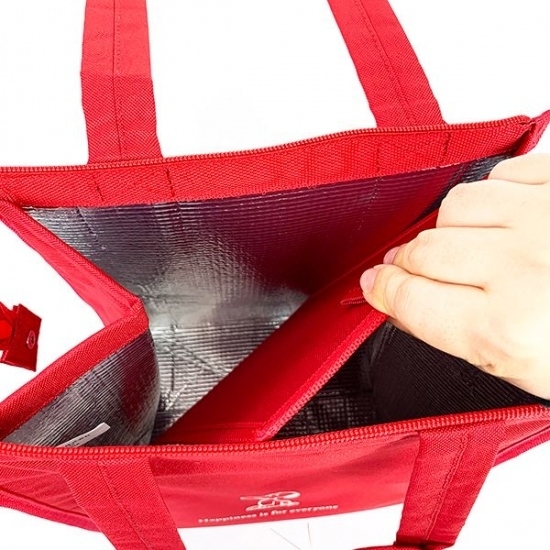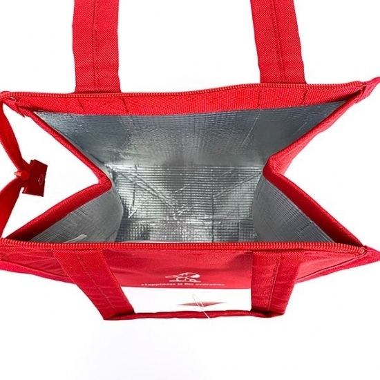 上部にはファスナーがついているので、お弁当箱をちゃんとガードしてくれます。冷気も逃げないので、保冷剤を入れても安心ですね。底の部分まで保冷素材になっています。