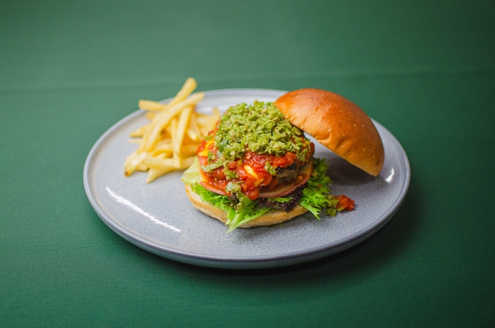 信州牛の深い旨味とピリ辛のぼたんこしょう、りんごの自然な甘みが絶妙にマッチした逸品。信州の恵みを一口で味わえる贅沢なハンバーガーです。