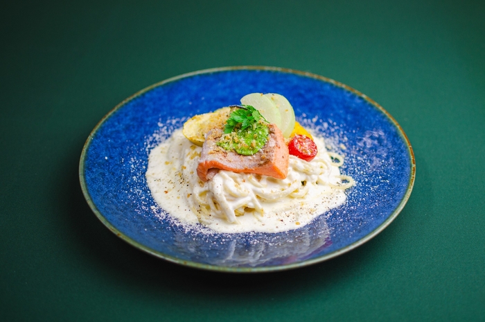 8)信州サーモンと夏野菜のレモンクリームパスタ / ¥1,480(税込)