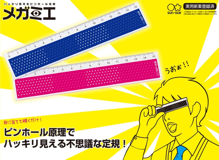 目に当てて覗くだけ!ピンホール原理でハッキリ見える 不思議な定規『メガミエ』全4色を3月下旬より順次展開