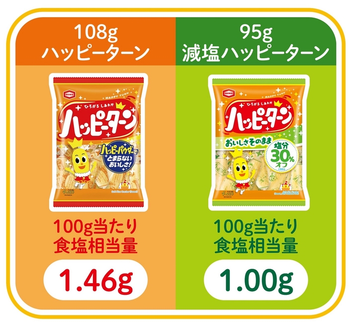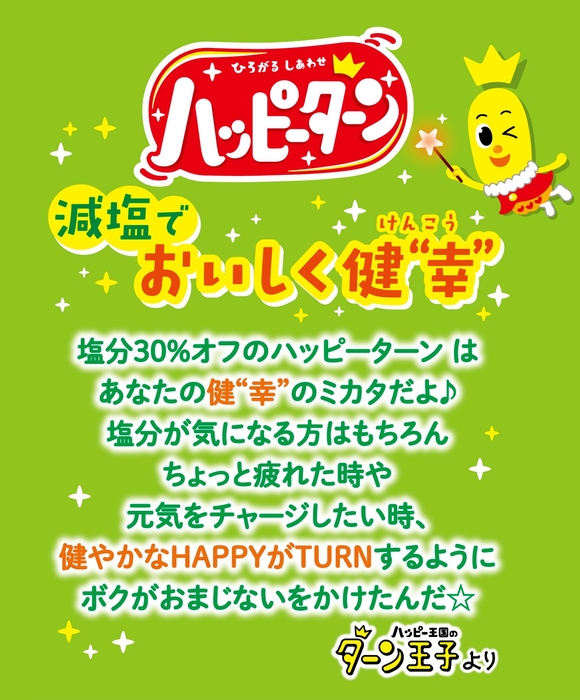 減塩でおいしく健“幸” “おいしさそのまま”塩分30%オフ※! 『減塩 ハッピーターン』新発売!!
