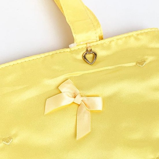 サテン地でツヤ感のある素材にフリルやリボンがあしらわれた、女の子の大好きを詰め込んだトートバッグ♪アーティストやアイドルの応援グッズを持ち運ぶための機能が満載です。早速ご覧ください。