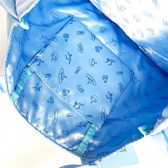 小物を入れるオープンポケットです。内側がシナモロールや応援グッズのデザインになっていて、かわいいですね。