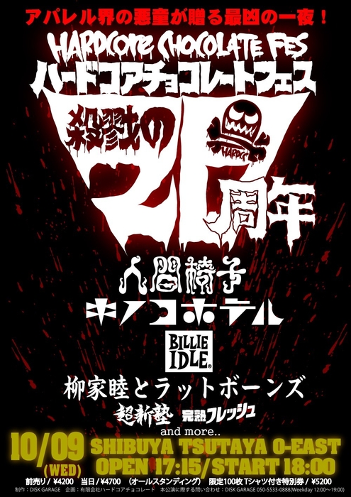 Tシャツ界の悪童、ハードコアチョコレートが ブランド設立20周年を迎え、 「ハードコアチョコレートフェス -殺戮の20周年-」 と題し、フェスを開催!