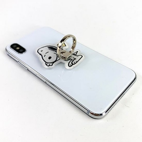 リングタイプもご紹介♪ダイカットされたスヌーピーのキュートなデザインで、リングに指を通してスマホを持つことで落下防止に♪