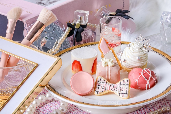 【兵庫・芦屋】冬のファッション“ツイード柄”やコスメアイテムからイメージした上品なスイーツ ペット同伴でも楽しめる! 『メイクアップ ウィンターアフタヌーンティー』