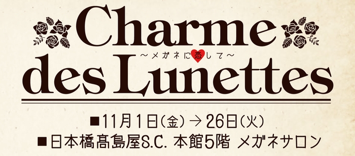 「Charme des Lunettes~メガネに恋して~」 日本橋髙島屋S.C.本館メガネサロンにて開催のお知らせ