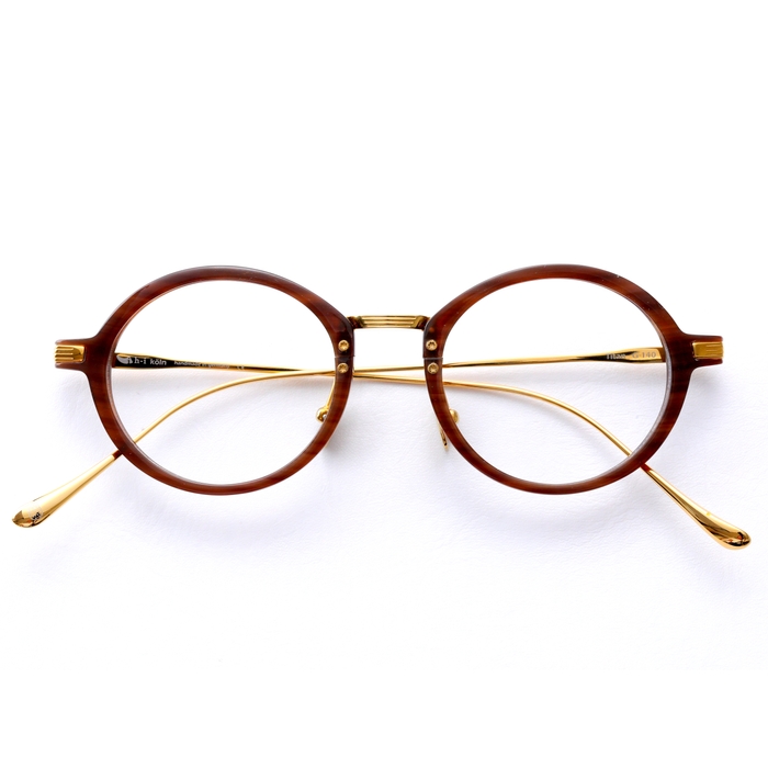 ヨーロッパでは、天然ホーンを身に着けると幸運をもたらすといわれ、ラッキーホーンと呼ばれています。バッファローホーンとチタンのコンビフレームは天然素材ならではの掛け心地です。ブラウンのホーンと、ゴールドのメタルが優しい印象を演出します。