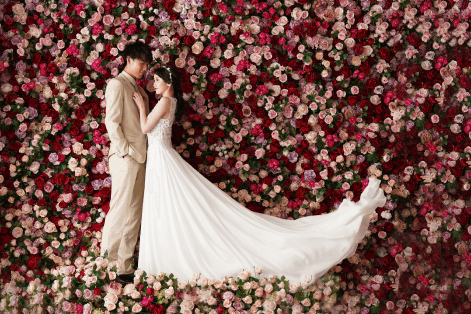 魅惑のフラワースタジオで、甘い結婚写真を