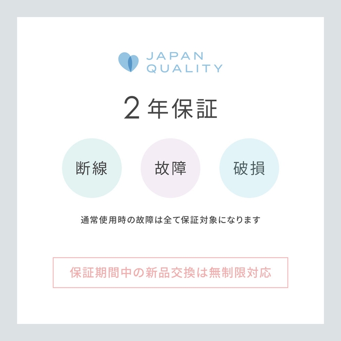 ・通常使用時の故障は全て保証の対象になります。新品交換の制限も無いので、保証期間中の故障時は何度でも新品に交換が可能です。