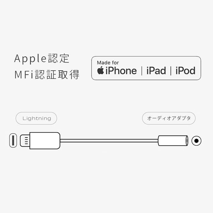 ・Lightningコネクタを3.5mmステレオミニプラグ端子に変換できるケーブルです。