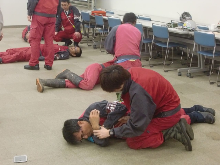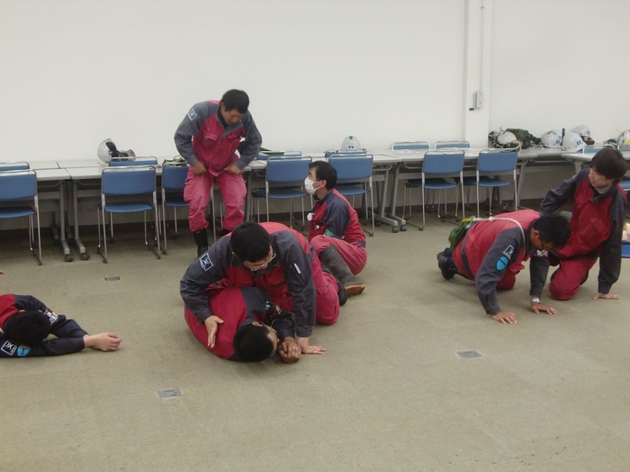 常石造船で福山西消防署の救急隊員の指導による、普通救命講習会を実施