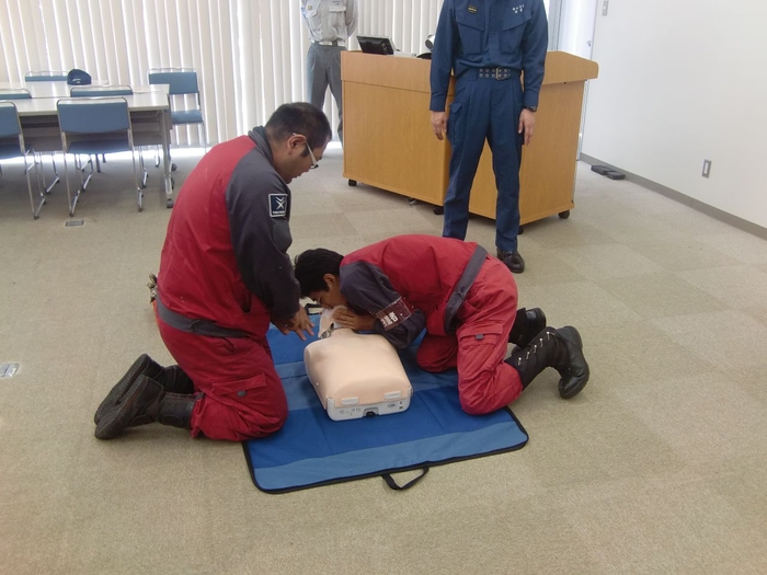 本講習は事故などによる心肺停止や出血などの緊急事態に、救急車到着までに必要な心肺蘇生法やAED使用などの応急手当の習得を目的としています。