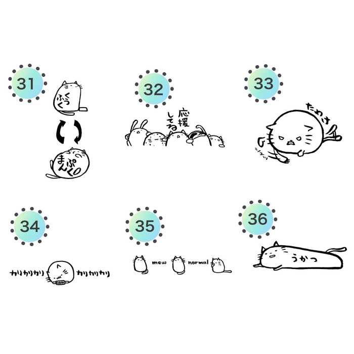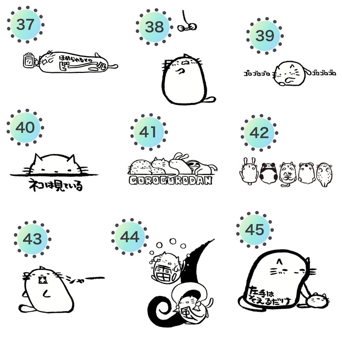 デザイン数: 全45種類の「ゆる猫たち」が、それぞれの気持ちを個性豊かに表現。