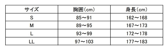 サイズ:S、M、L、LLサイズの4サイズ(男女兼用)