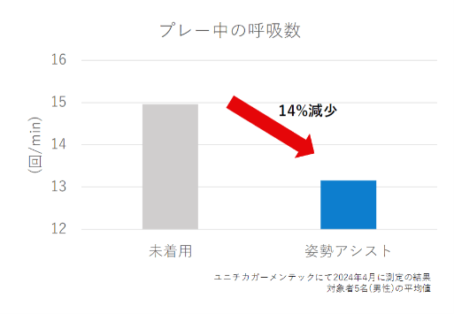 ※5:プレー中の呼吸数が未着用と比較して14%減少。