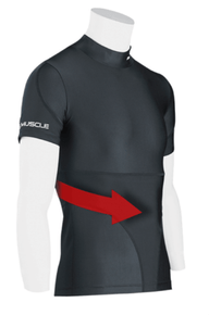 そこで、第二弾製品としてこの姿勢の悩みに着目し、選手のプレーパフォーマンスをサポートするコンプレッションインナー「ゲーミング マッスル 姿勢アシストインナー」が完成しました。特徴的なパターンによるクロスベルト構造や体幹をギュッと引き締めるコンプレッションにより、着用することでプレーヤーの姿勢への意識に働きかけ、「試合に勝ちたい!」という気持ちを応援し、ベストなコンディションで臨めるようサポートします。