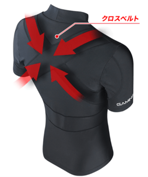 ~背面のクロスベルトとコンプレッションウエアの着圧で、プレーヤーの勝利を後押し!~