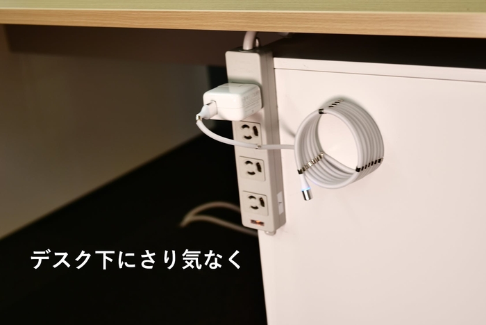 ケーブルに等間隔でマグネットが付いているので、くっつけながら、あっという間にまとめられます。