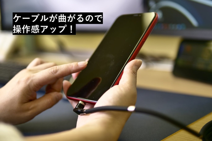 接続部分は、横軸360°、縦軸180°回転するので、充電中の操作でもケーブルが邪魔になりません。