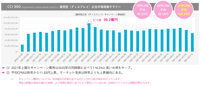2021年上期のCPM平均は100.4円と、前年比113.3%上昇した。