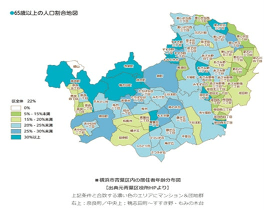 PANTRY設置候補地である本社から半径5~10㎞圏内、横浜市青葉区近隣エリア(横浜市都筑区、緑区:川崎市麻生区:東京都町田市も含め)での先行実績を基に「地元密着」、「パントリー」、「日持ちグルメ」等の「ブランドイメージ」を確立し、他エリアへの足掛かりとします。 【PANTRY設置の候補環境】(右図:横浜市青葉区)