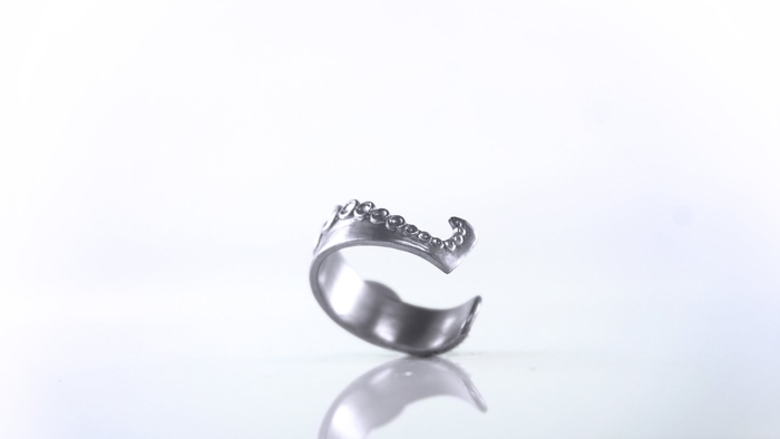 「私自身が缶のプルタブを開けにくいと感じる事がある為、生活の中で困っている事を解決したいと思い、私と同じ悩みをもっている人がプルタブを苦戦せずに開けることが出来る指輪を制作しました。